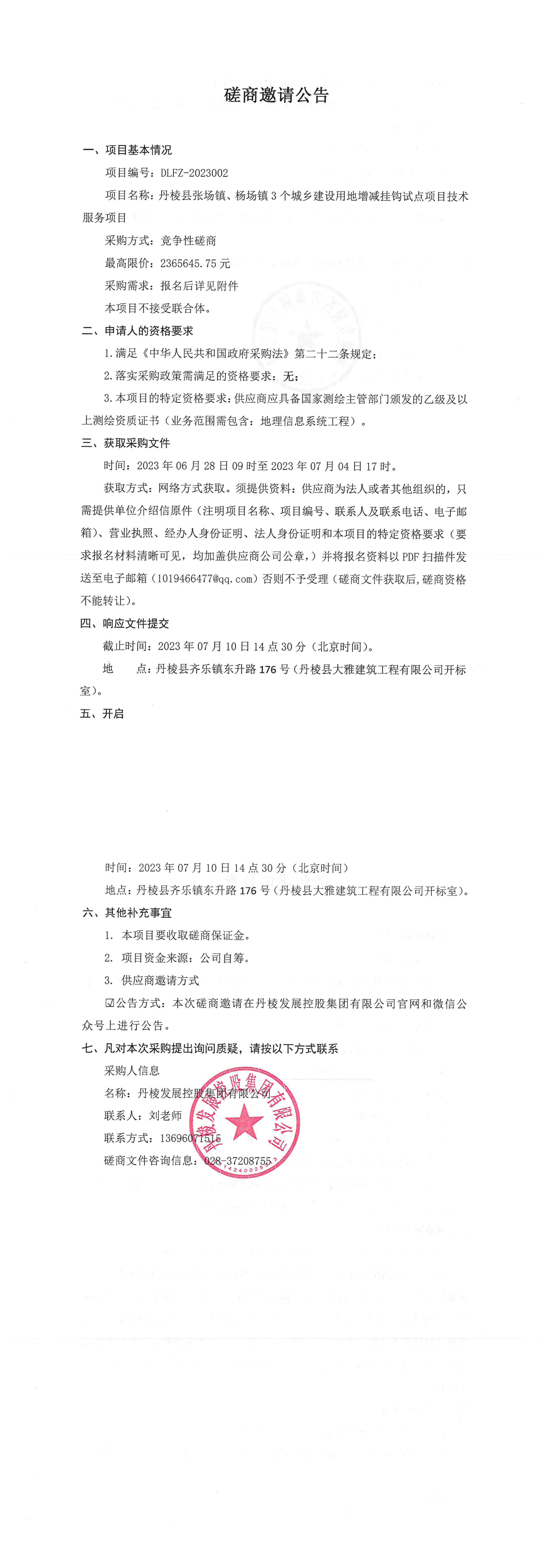 項(xiàng)目名稱:丹棱縣張場(chǎng)鎮(zhèn)、楊場(chǎng)鎮(zhèn)3個(gè)城鄉(xiāng)建設(shè)用地增減掛鉤試點(diǎn)項(xiàng)目技術(shù)服務(wù)項(xiàng)目磋商邀請(qǐng)公告