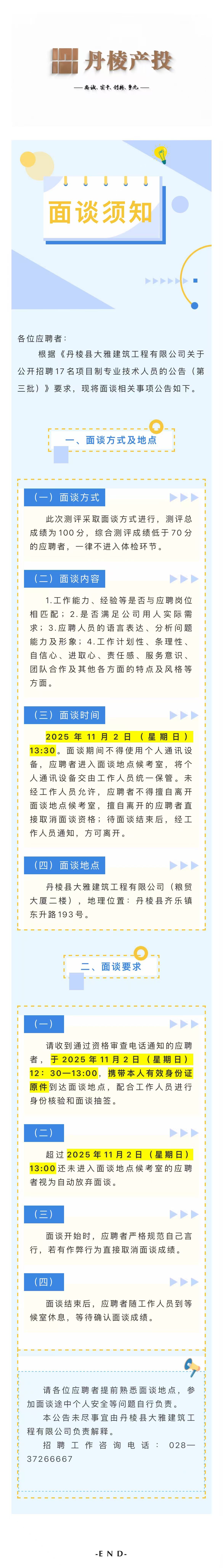 丹棱縣大雅建筑工程有限公司關(guān)于公開招聘17名項目制專業(yè)技術(shù)人員的面談須知(第三批)