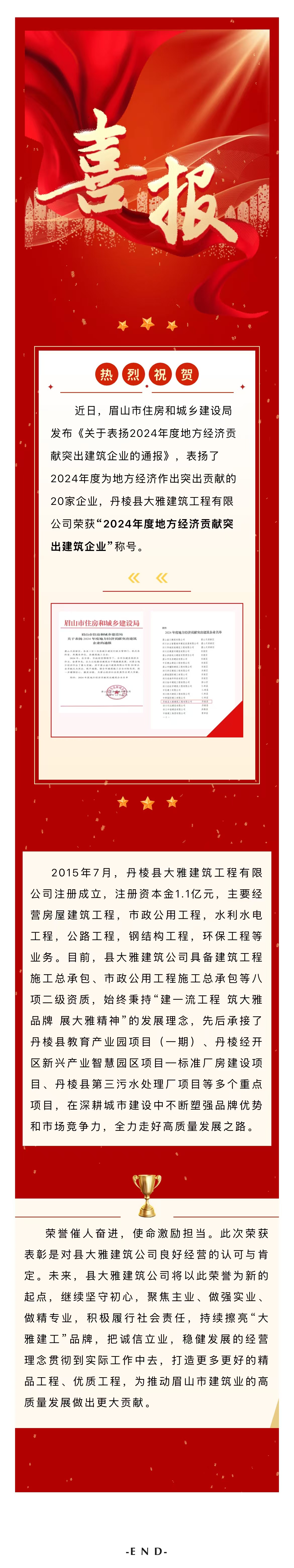 【縣大雅建筑公司】喜報(bào)!榮獲全市2024年度地方經(jīng)濟(jì)貢獻(xiàn)突出建筑企業(yè)