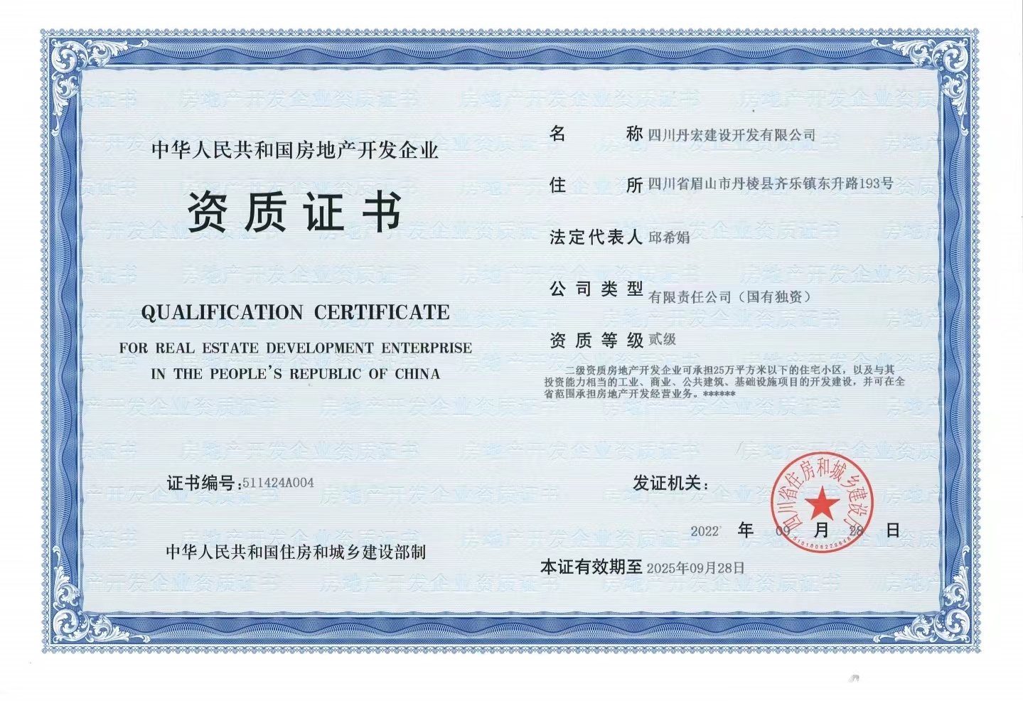 丹宏公司順利取得房地產(chǎn)開發(fā)二級資質(zhì)