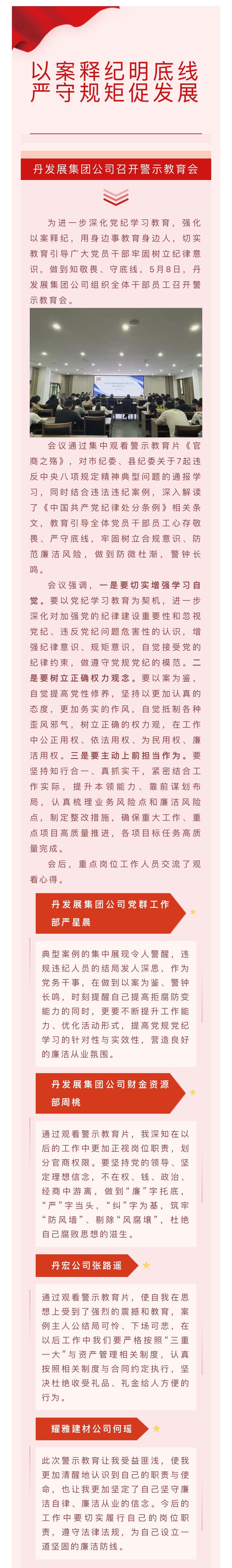 以案釋紀(jì)明底線,嚴(yán)守規(guī)矩促發(fā)展丨丹發(fā)展集團(tuán)公司召開(kāi)警示教育會(huì)